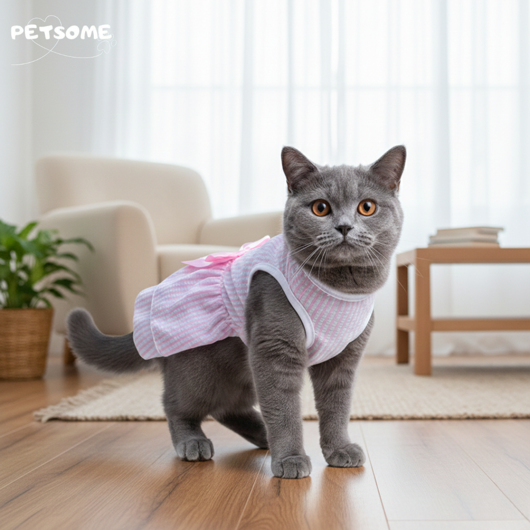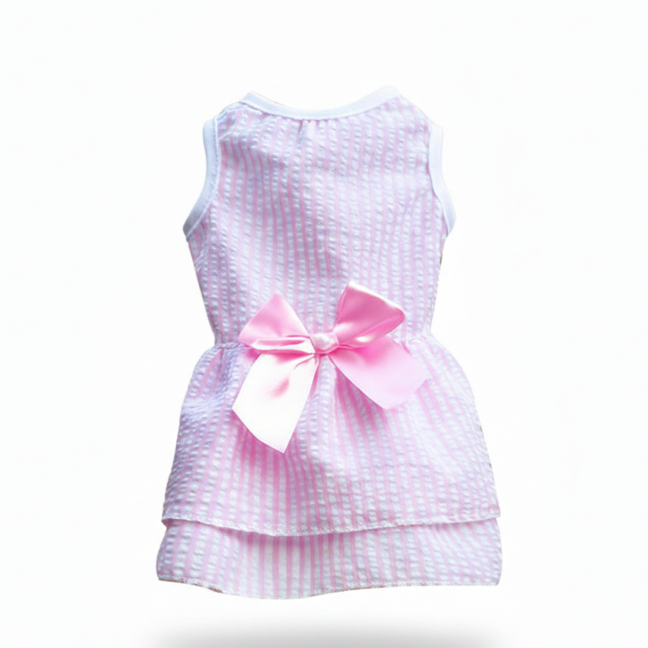 Treat your furry friend to a touch of sweetness with the Petal Pink Seersucker Dress by Petsome. This adorable outfit features classic pink and white vertical stripes on lightweight, textured seersucker fabric, accented with a satin-finish pink bow for a dainty, polished look. Designed for ultimate comfort and breathability, it’s the perfect choice for stylish cats and dogs alike, whether they're lounging at home or ready for a sunny afternoon adventure.