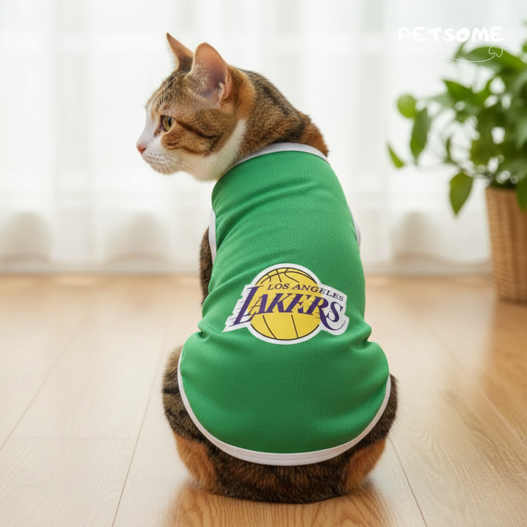 Treat your furry friend to the ultimate sporty look with the Petsome basketball jersey. Featuring a vibrant green mesh fabric with the iconic "Lakers" design, this lightweight and breathable tank top is perfect for staying cool and comfortable at home. Available in sizes ranging from XS to XL, it offers a tailored fit for various sizes, with a flexible chest girth of up to 50 cm to ensure your furry friend can move with ease.